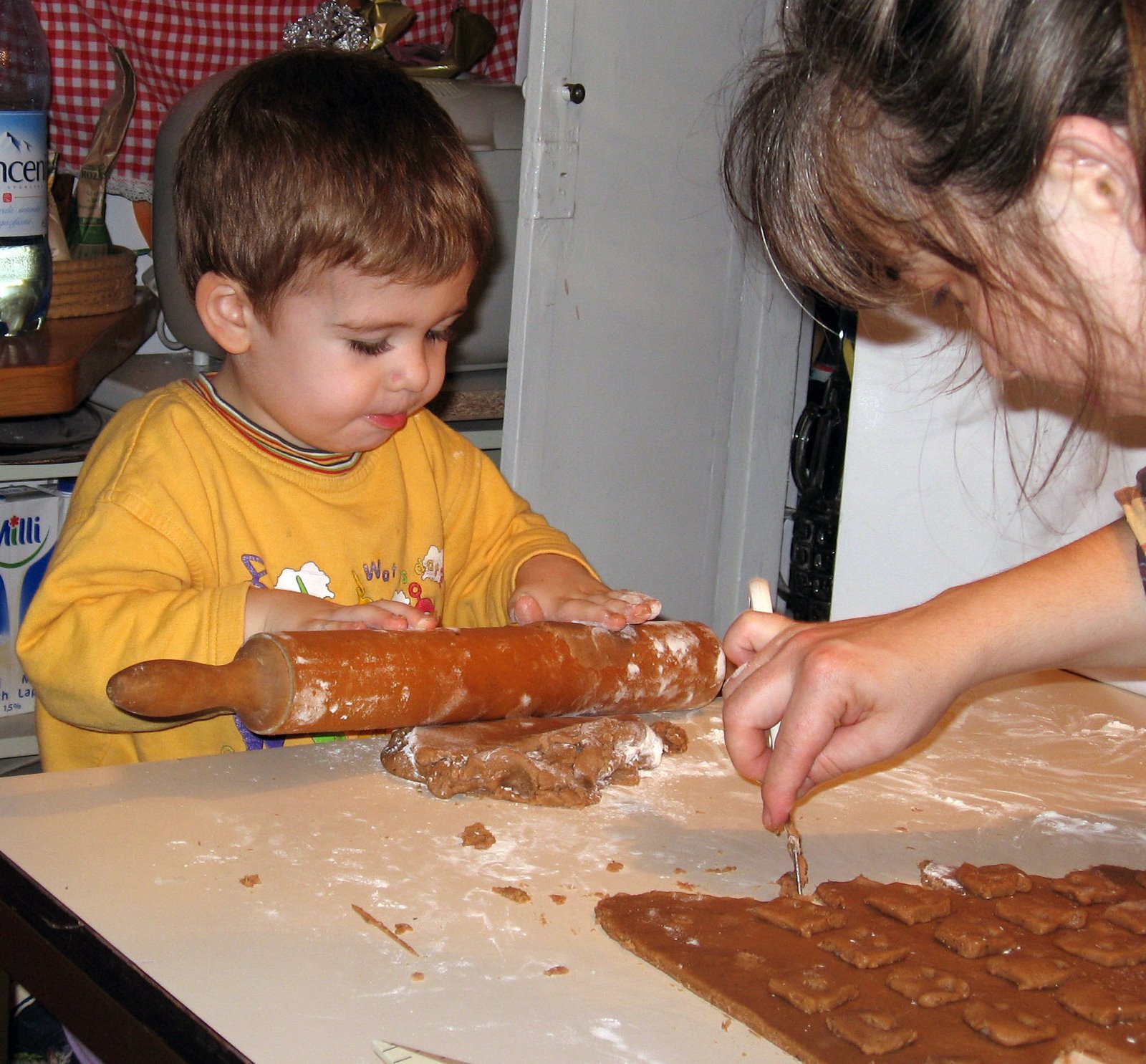 Anya már rég óta készül a mézeskalázs sütésre. Adventi naptár és mézeskalács házikó a terv. A Pata utca összes boltját végigjárta, sehol nem lehet gyömbért kapni, szegfűszeg is csak darabos volt. Itthon volt egy üvegben valami, amire Apa rávágta, hogy fahéj. Mikor anya szólt, hogy az nem, akkor megegyeztek, hogy akkor az biztos szegfűszeg. Ebéd előtt már Ákos és anya nekiálltak összegyúrni a masszát. Ebéd, délutáni alvás alatt ez a hűtőben pihent. Amint Ákos felébredt, nekiláttak a nagy munkának. Aba a teknőben vezényelt és néha megszólalt, hogy "EU" vagy "HŐőőő", vagyis gáz van az EUban?Adventi karácsonyfa. Van hozzá sablon is. Anya kinyújtotta a tésztát, sablon a tésztára, gombostűvel végigszúrkálva, kivágva, a 24 db. kis négyzetecske kivágva, kilyukasztva, és most jön a difi! A sablon nagyobb, mint a tepsi. És ez még semmi! Apa segítsége sem segített: a tészta odamakacsolta magát az asztalhoz, nem lehetett sehogysem felvakarni, nemhogy átemelni tepsibe! Anya felbosszankodott, és összegyúrta az egészet, adventi naptár lefújva (úgyis van az angyalkás!), és miután Aba evett, megsütötte a szív alakúra szaggatott mézeskalácsokat. Ákos ezt jobban élvezte...Finom is lett, igaz, parittyázni lehet vele, olyan kemény. De vacsorára Ákos tejbe áztatva jól belakott vele.