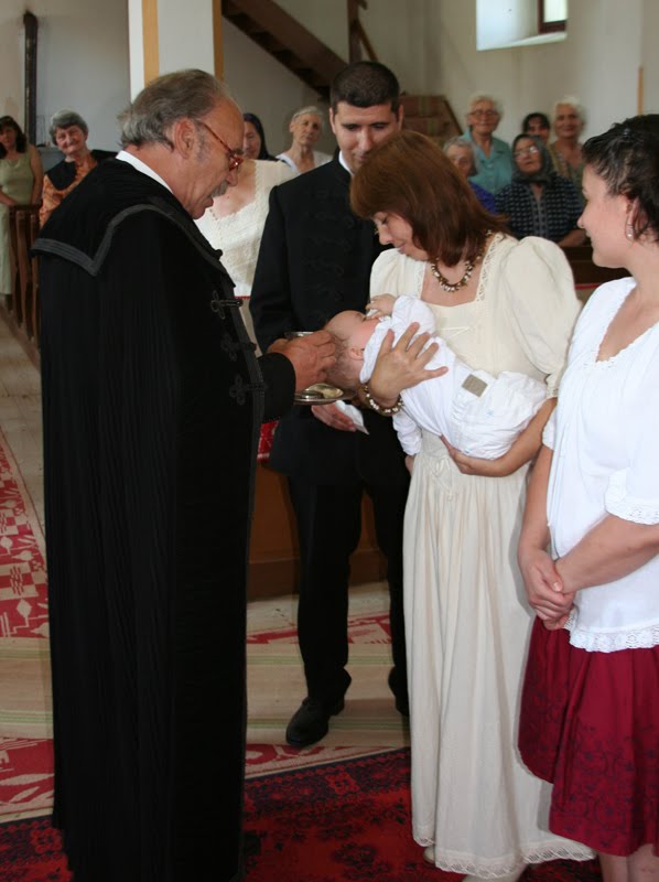 Istentisztelet keretén belül keresztelő. Keresztel Zsombor nagyapja, Szőke Zoltán.
